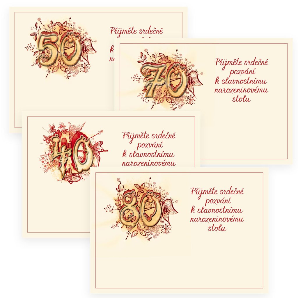 - předtištěný text vedle číslovky: Přijměte srdečné pozvání k narozeninovému stolu