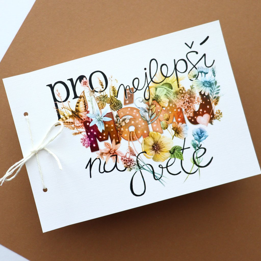 - přání pro nejlepší mámu na světě se skládá ze dvou stejně velkých karet z bílého strukturovaného papíru plátno 246g/m2